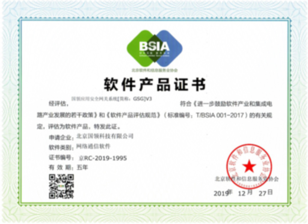軟件產品證書_國領科技
